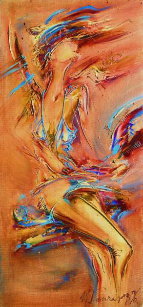 Igor Goncharov's painting is a pleasure to the eye. Intricate line play, whether simplified or capricious, and colour from strictly noble gamma to rainbowed mosaic palette - all is a pleasure to the eye. But as often as not the alarm of loneliness is hidden by refined improvisation of colour, the sympathy and heaviness of life problems are behind irony of the subject. Combining alarming faint notes with decorativeness of his pictures the gifted painter is able to captivate onlookers into his fantastic and real world. And it does him credit. The spontaneous way of Goncharov's thinking is a characteristic feature of his art. His orientation to subconciousness doesn't at all exclude the relations to the reality. His being keen on many branches of the art has enabled Goncharov to have an original artistic manner.